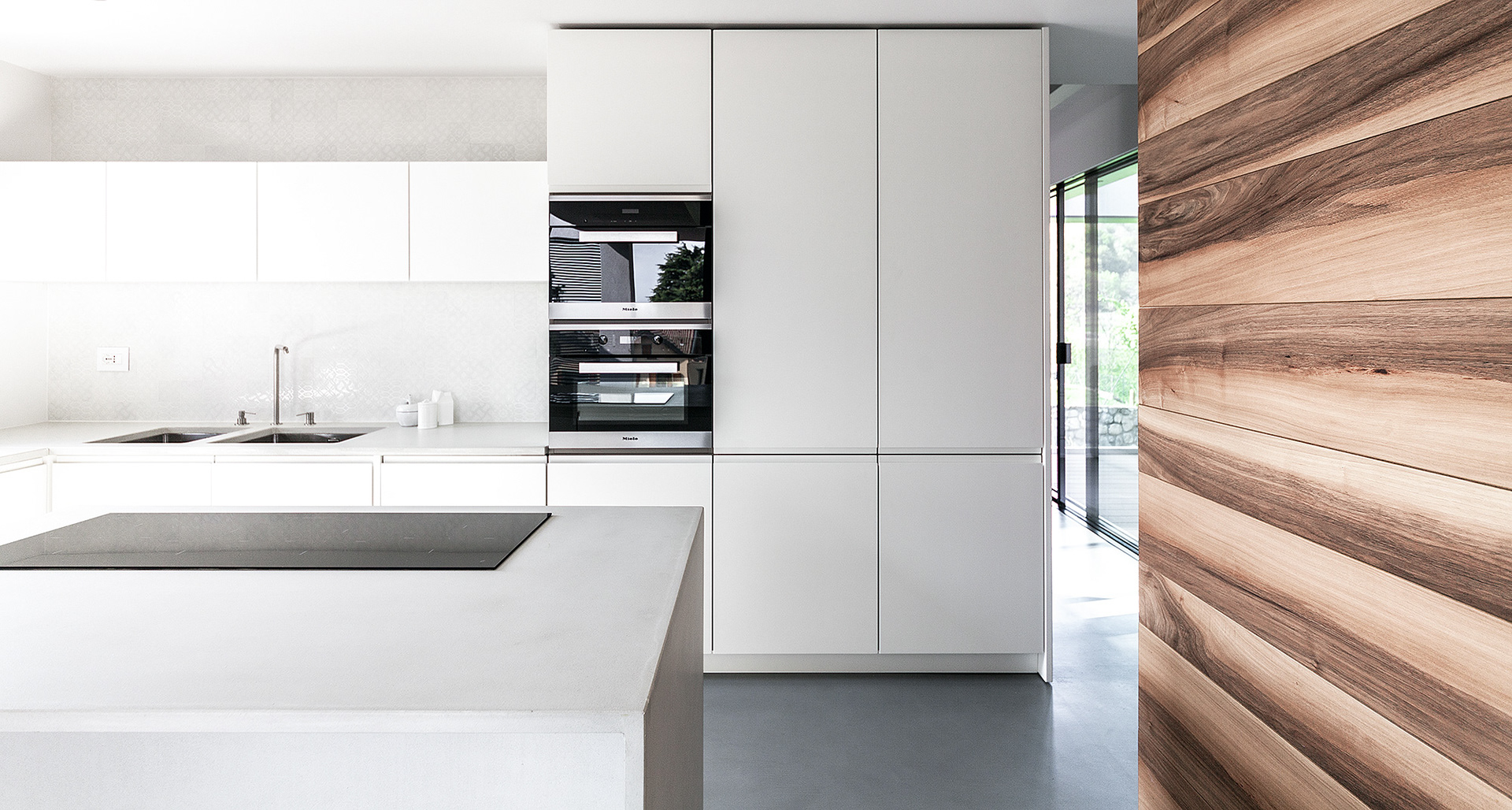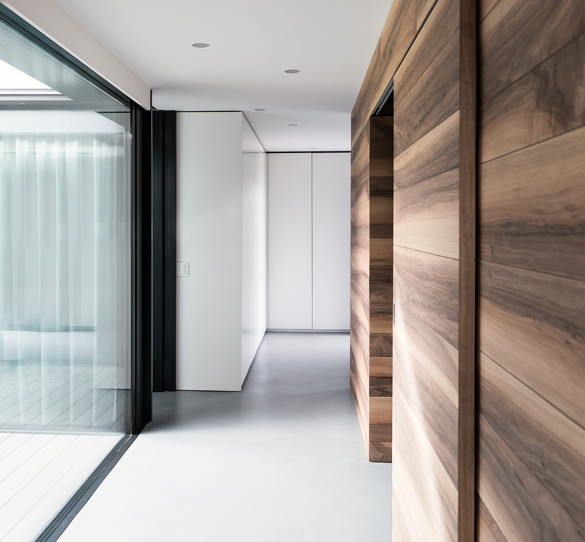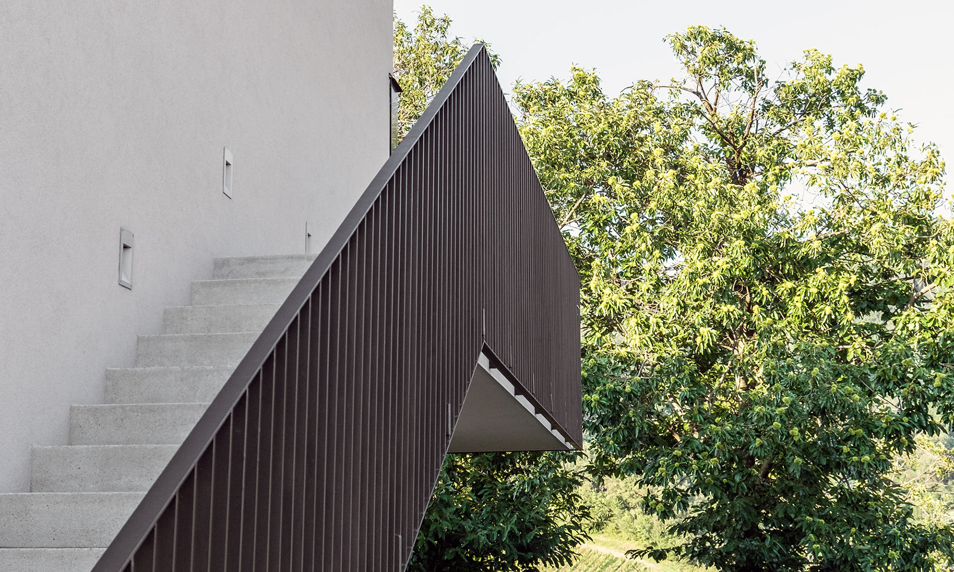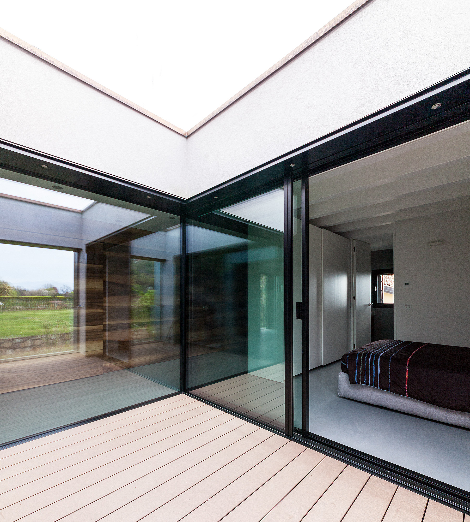 The parents home built in 2007 has been expanded to form a new apartment for the daughter. The concept behind the project starts from the desire to create living spaces that, although open to the landscape, allowing some privacy and confidentiality. In this sense, the house is a large space divided into rooms in continuity with small patios. New element that organizes the hierarchy of the house is represented by a central block lined with walnut slats that articulates and divides the internal functions and which contains the elevator shaft and services.