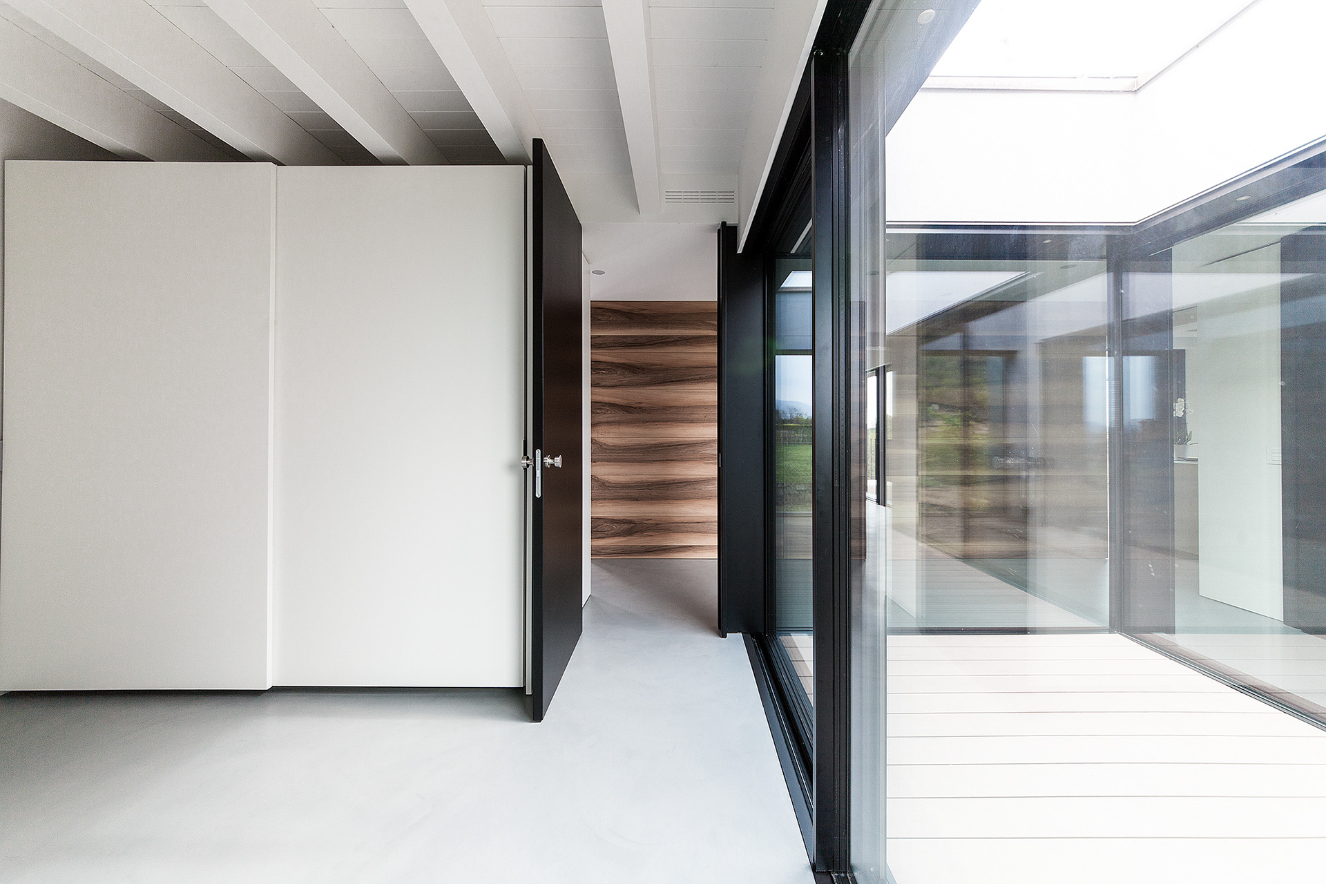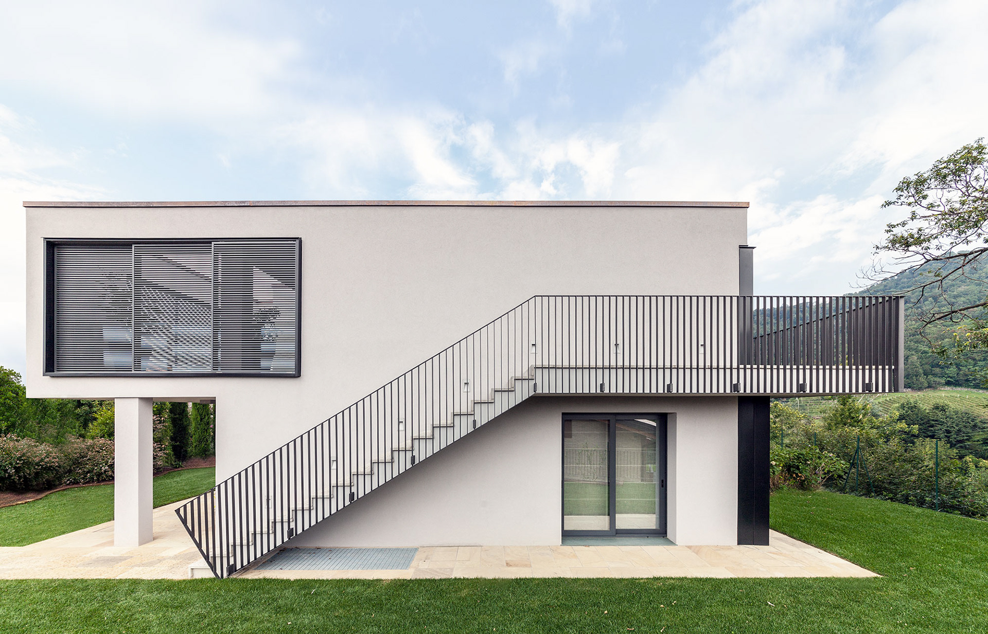 La casa unifamiliare costruita nel 2007 dai genitori è stata sopralzata creando un nuovo appartamento per la figlia. Il concetto alla base del progetto parte dalla volontà di creare spazi domestici in continuità tra loro che pur essendo aperti verso il paesaggio consentano una certa intimità e riservatezza. In questo senso la casa è un grande spazio suddiviso in stanze in continuità con piccoli patii. Nuove elemento che organizza la gerarchia della casa è rappresentato da un blocco centrale rivestito in doghe di noce che articola e suddivide le funzioni interne  e che a sua volta contiene il vano ascensore e i servizi.