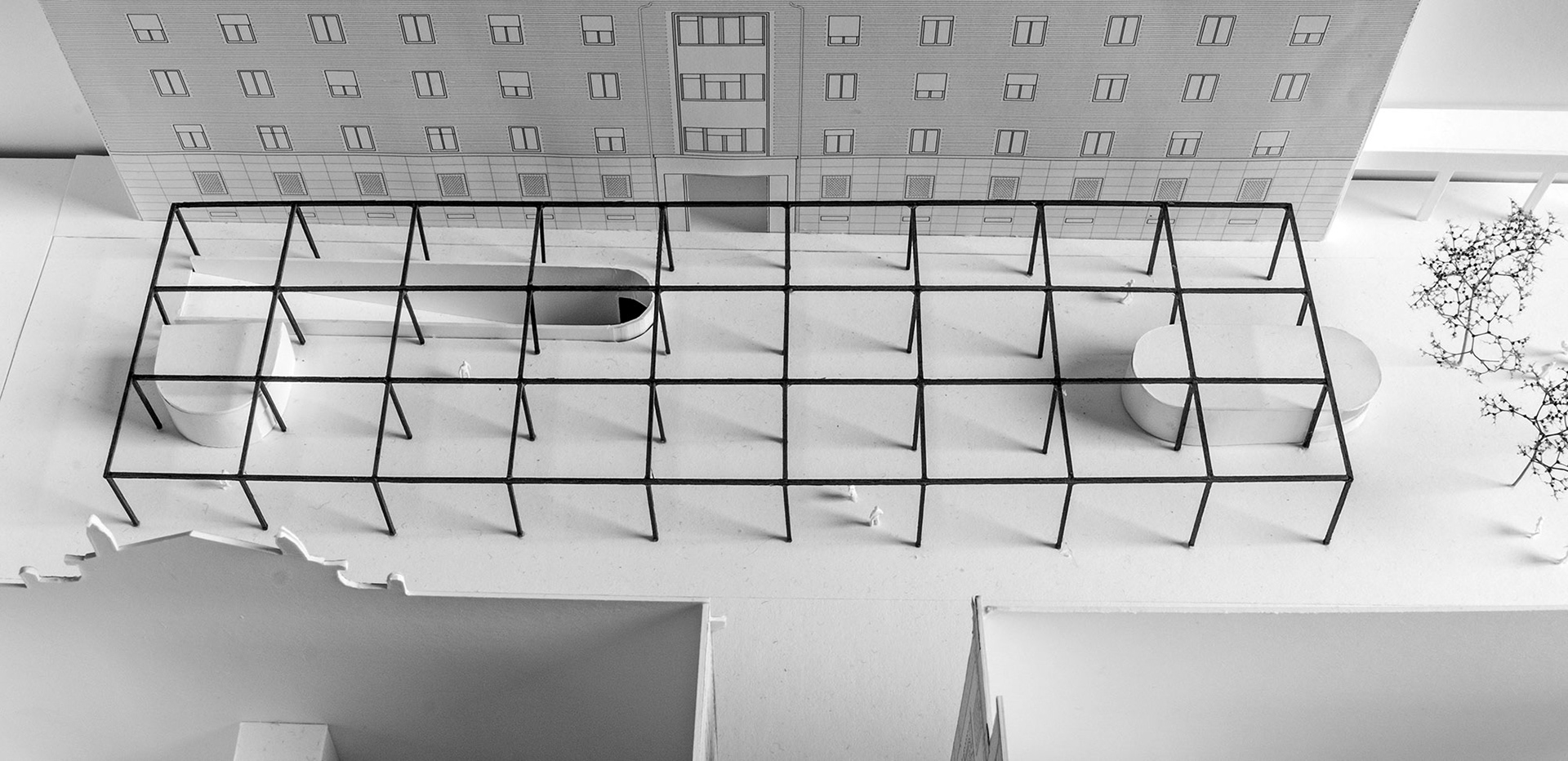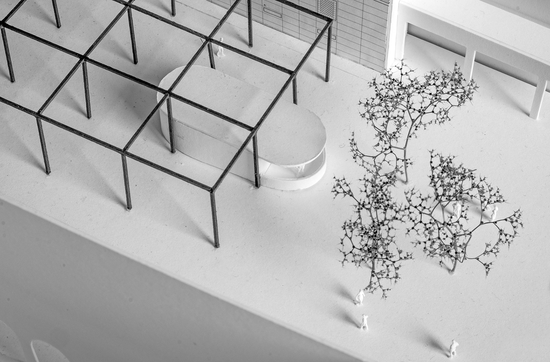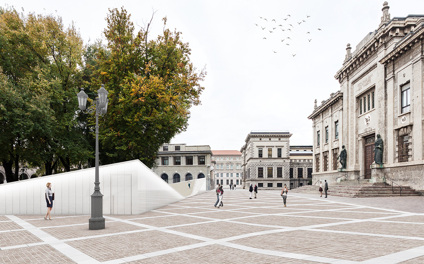 Aldilà delle esigenze strettamente normative e funzionali, il progetto attribuisce agli elementi di collegamento tra il livello interrato dell’ex rifugio antiaereo e il livello superiore dello spazio pubblico , un ruolo morfologico e connotativo importante.