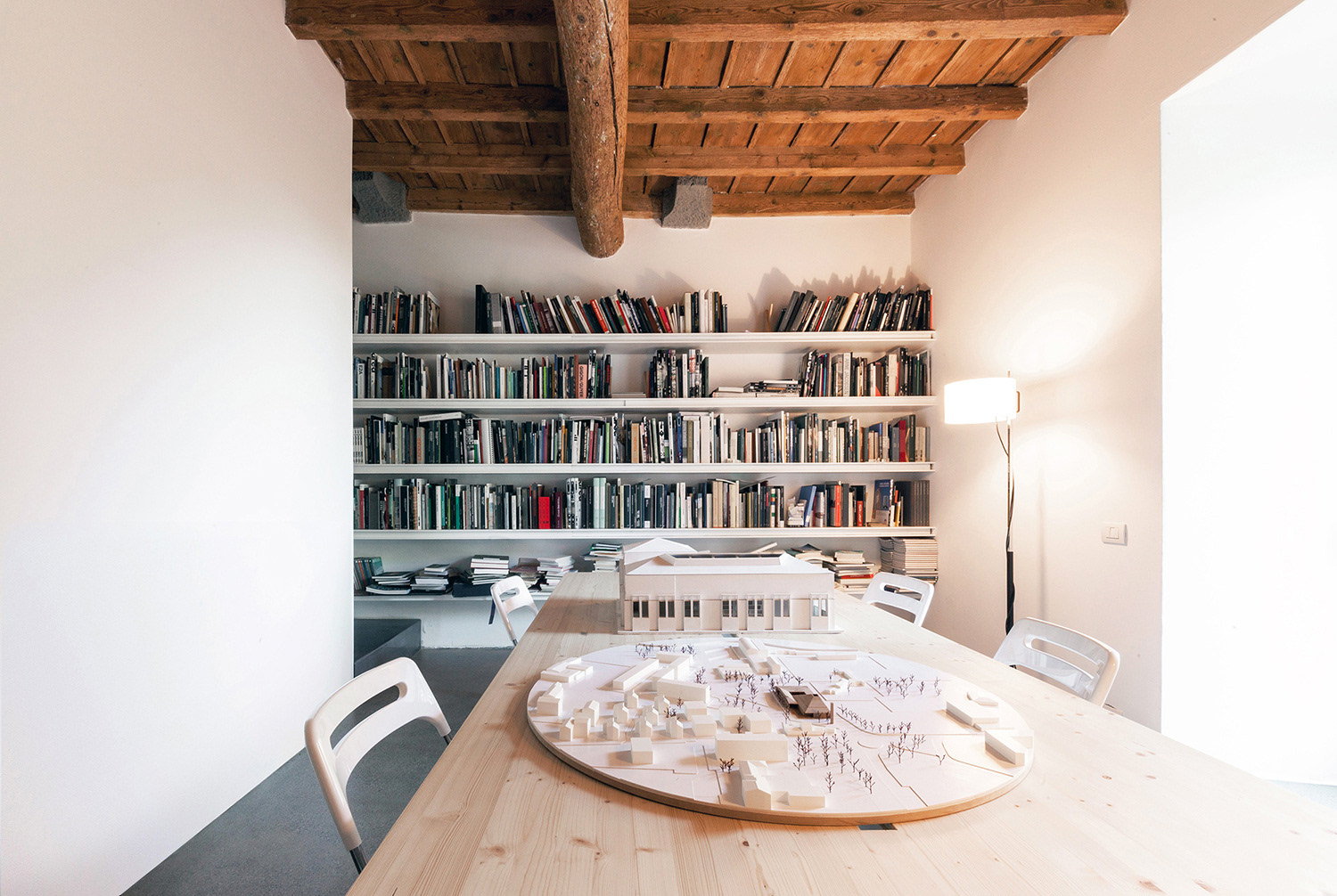 The new studio of the CN10 architecs occupies three floors of an old house of the nineteenth century in a small village along the foothill road that runs along the southern front of the Monte Canto (Bergamo, Italy). The building consists of five levels, two of which are not visible from the street because recessed into the hillside. The studio spaces are available on the ground floor with direct entrance from the street and in the two lower floors facing the inner courtyard. The project respects the typological plan, the spatial characters and the original materials.