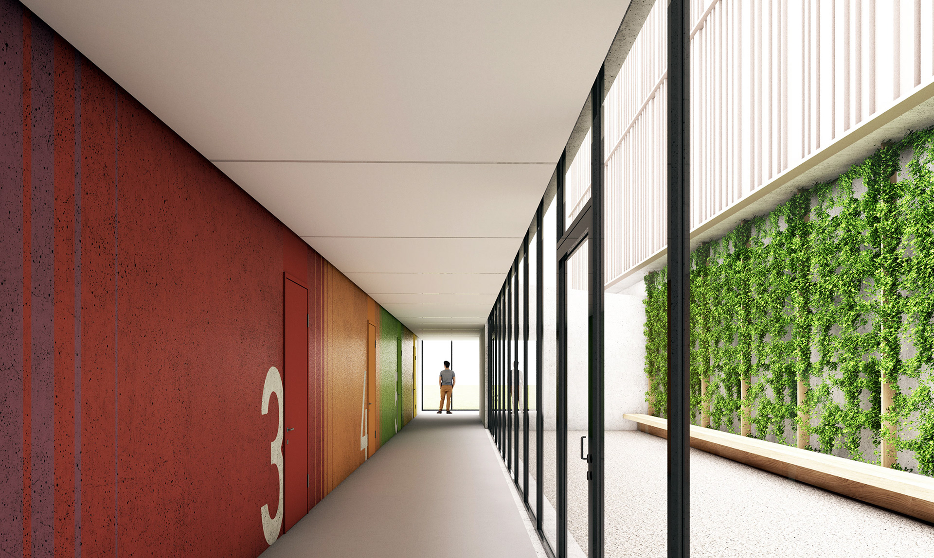 La permeabilità verso il territorio si accompagna ad una eccezionale visibilità trasversale interna. Una importantissima funzione a carattere speciale come lo spazio multiuso  è stato posizionato in modo tale che sia sempre possibile vedere cosa vi si stia svolgendo all’interno senza tuttavia disturbarne il funzionamento.