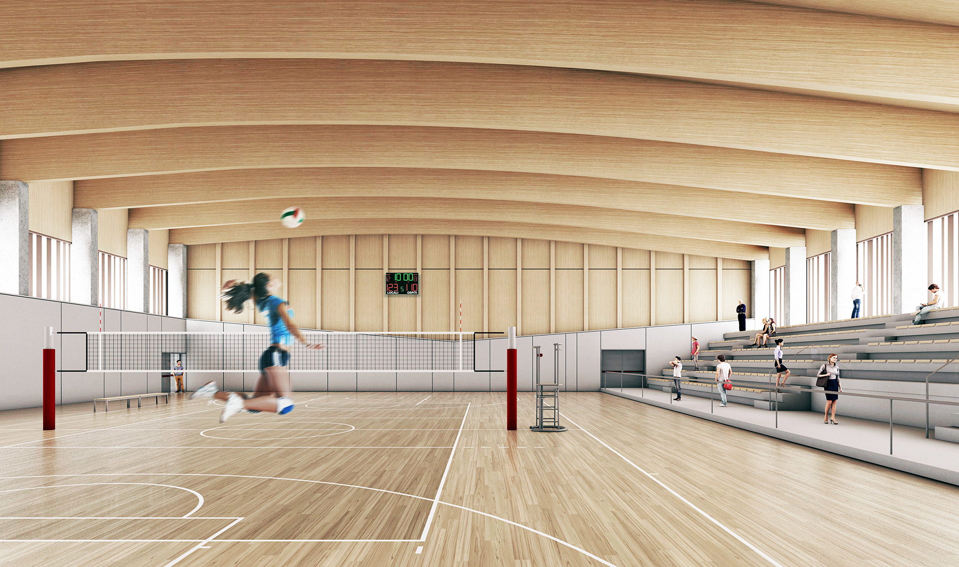 Il progetto di un palazzetto dello sport è un delicato equilibrio in tensione tra due ambizioni altrettanto importanti: offrire allo spazio del gioco la massima possibilità di trasformazione e di performance, e stimolare nel modo più preciso possibile la percezione dei suoi fruitori e protagonisti, siano essi i ragazzi, atleti ai diversi livelli, ma anche la comunità che ruota attorno all’edificio.