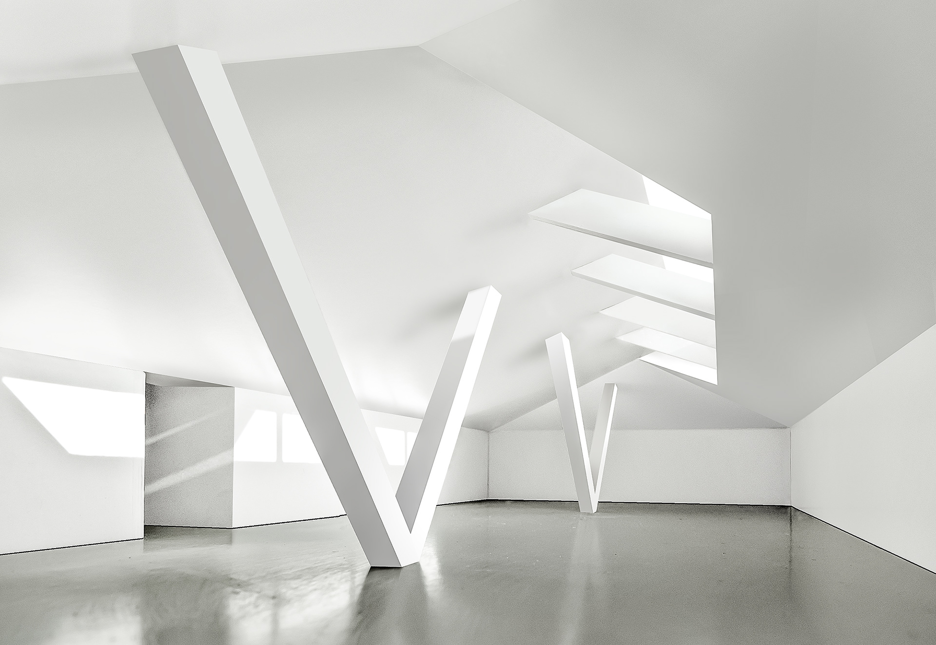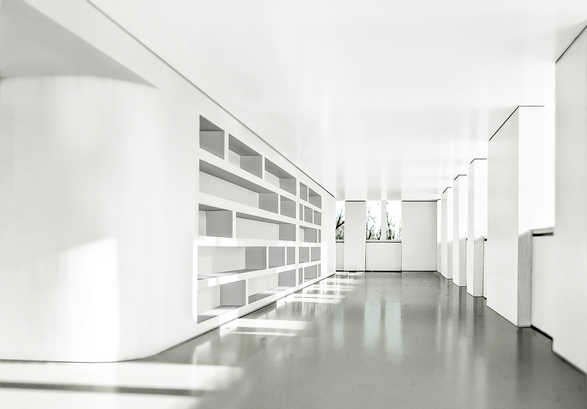 The interior spaces are organized entirely on the axis of distribution of the central corridor that runs through the length of the building.