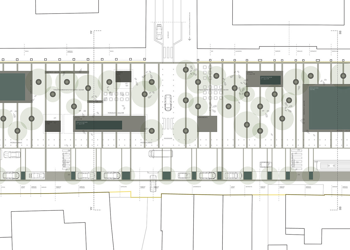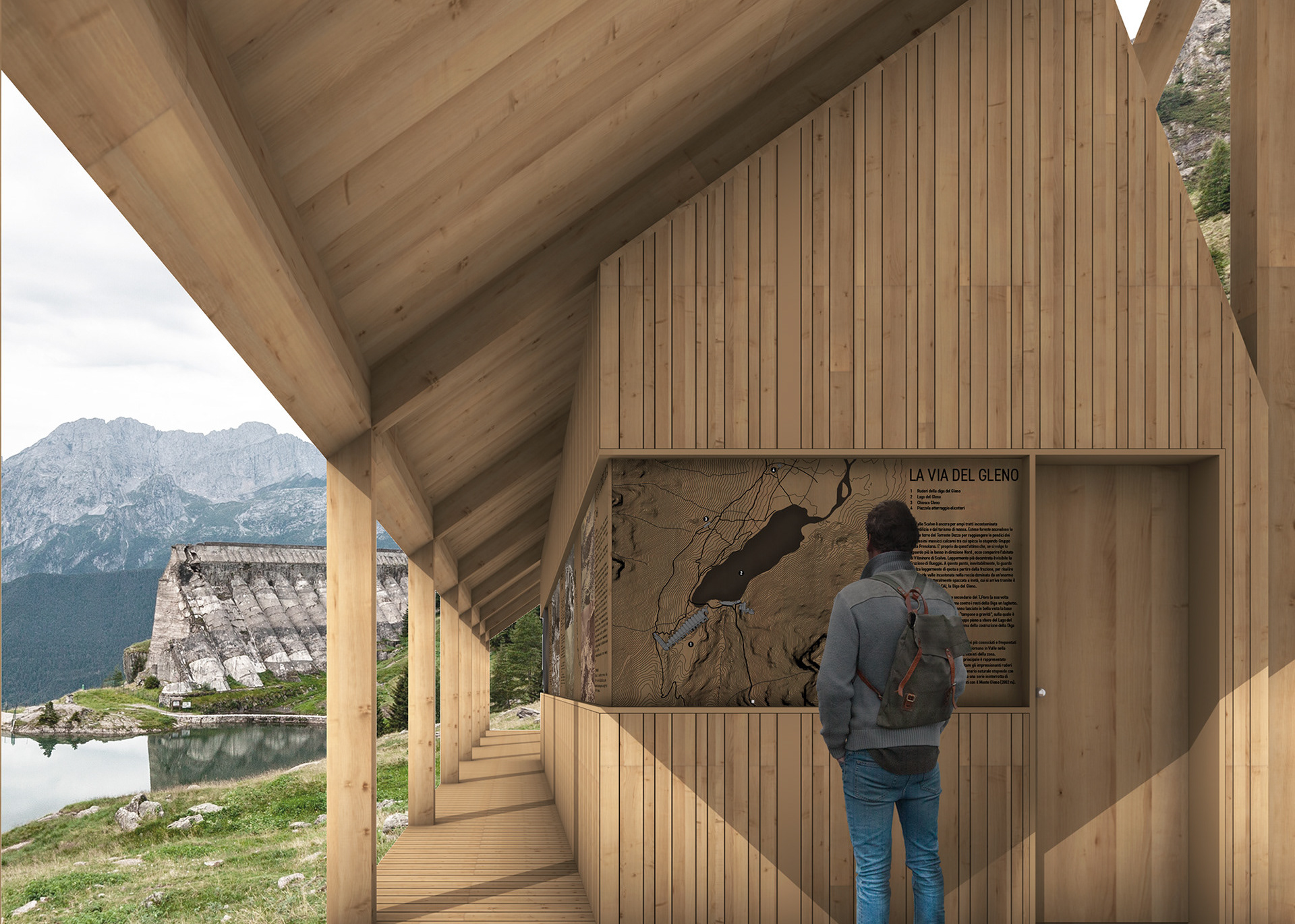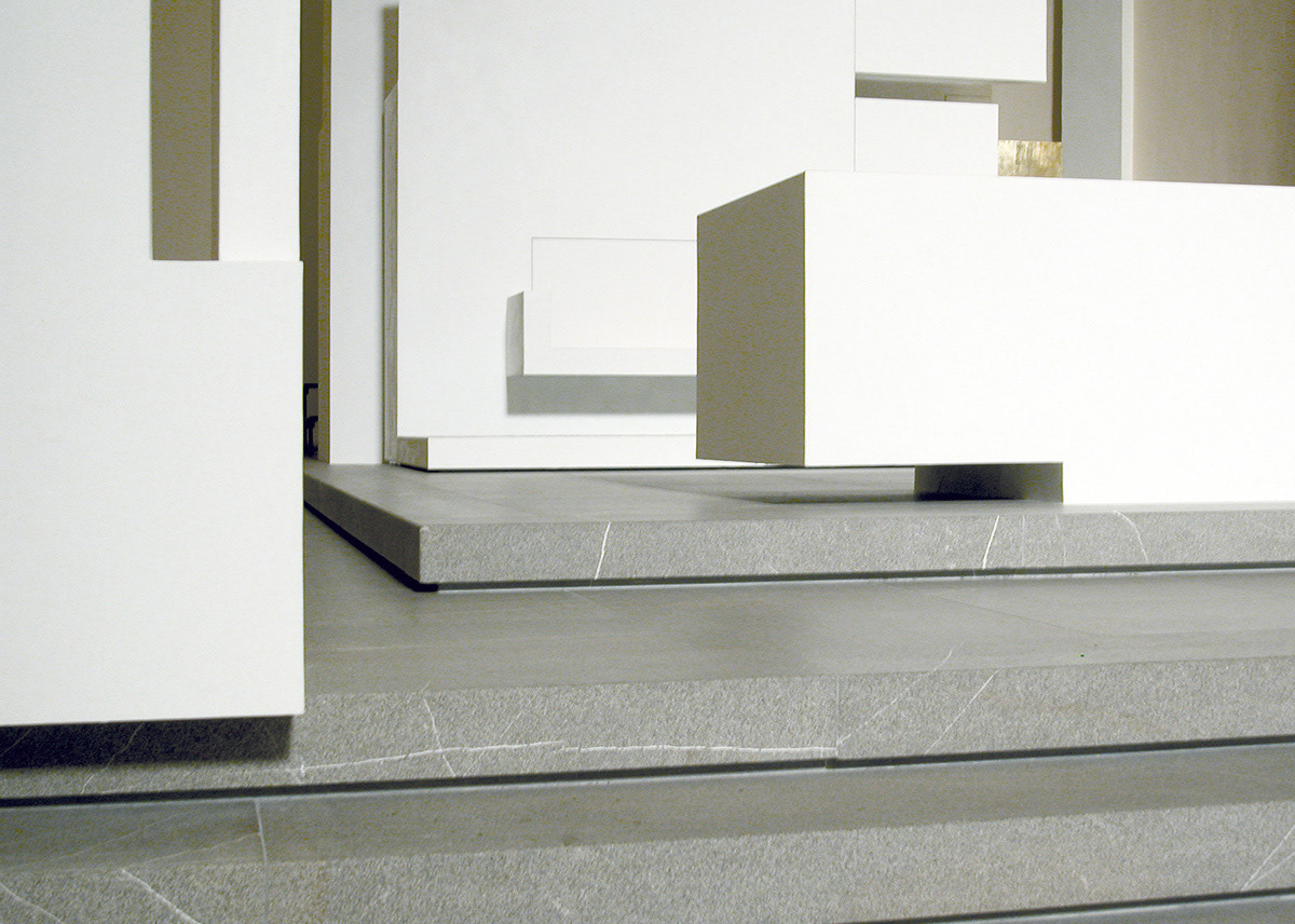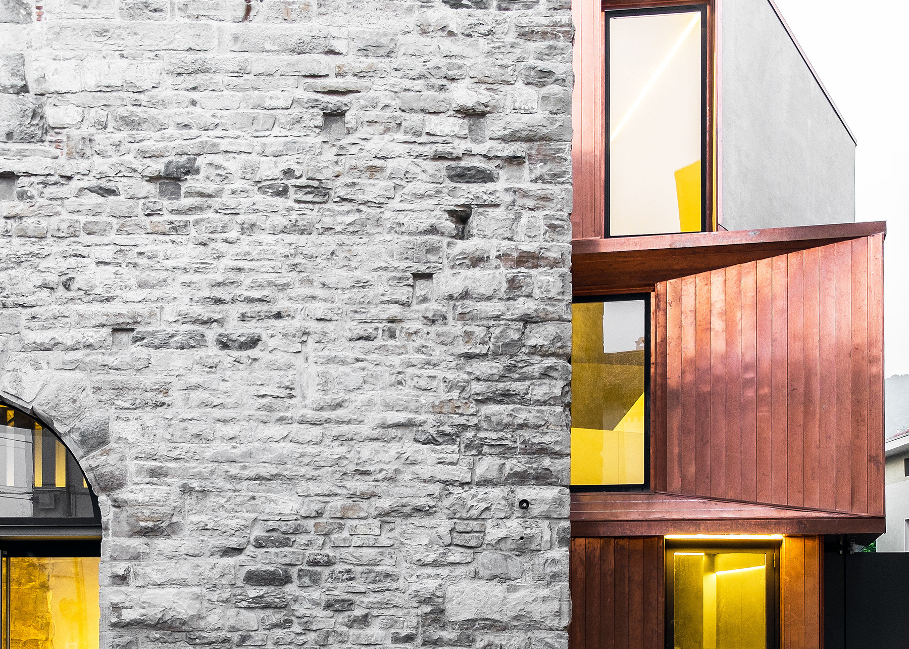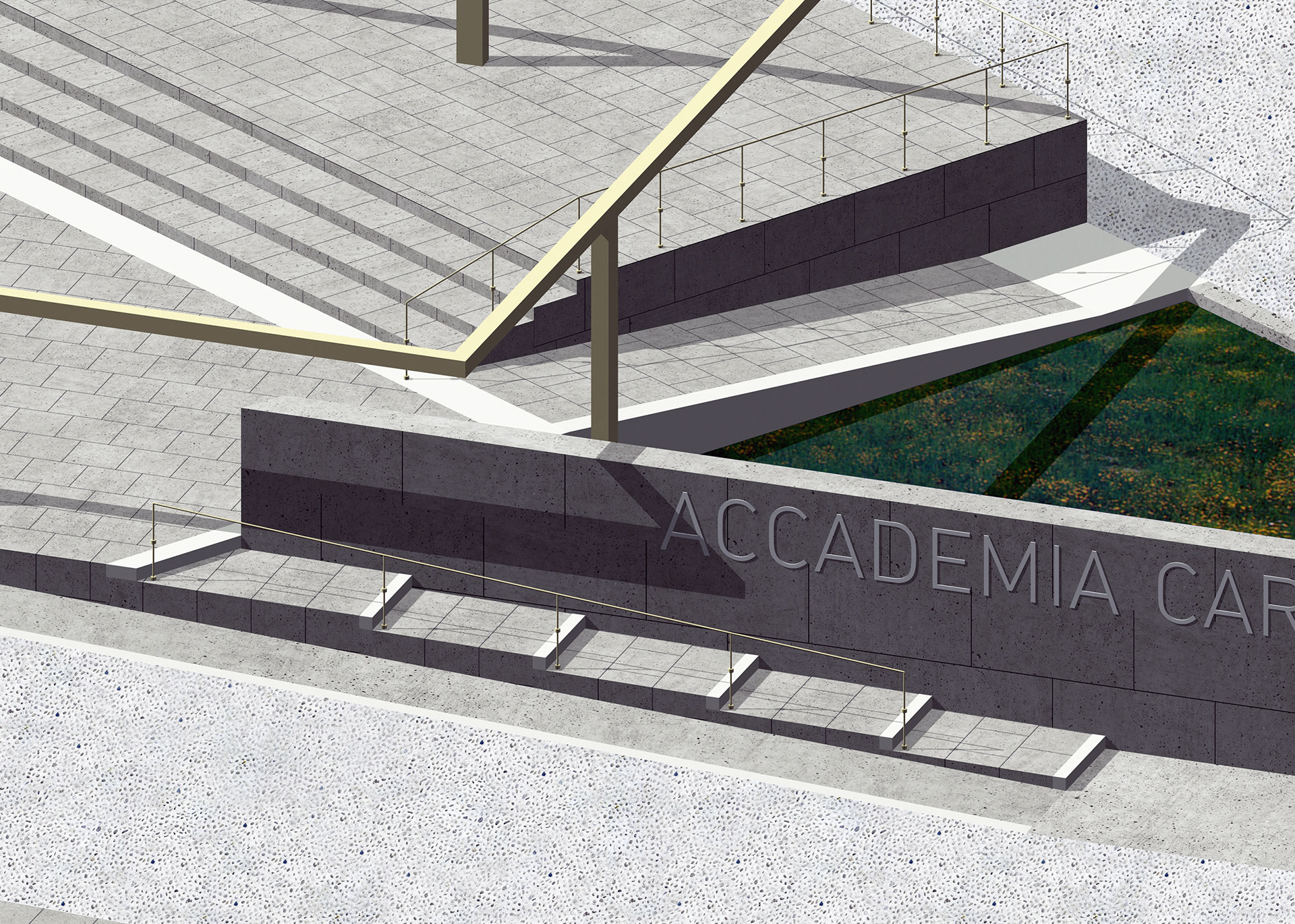 Il nuovo edificio, si inserisce in modo coerente e misurato nel contesto. In forma di blocco compatto, esso si dispone al centro del lotto. Il volume si incastra nel terreno in pendenza senza alterarne l’andamento. L’insieme delle funzioni previste si dispongono su due soli livelli, creando relazioni di continuità tra interno ed esterno. Aggiungendo qualità allo spazio urbano essa diviene elemento rappresentativo e identitario per l’intera collettività, in grado di assolvere al ruolo di centro culturale e museale secondo un approccio semplice, flessibile e modulare. Verso gli edifici vicini il nuovo complesso assume il ruolo di “cerniera” tra pubblico e privato, mentre verso il fiume esso consolida più precisamente il ruolo urbano della riva sinistra in giustapposizione alla compattezza del centro storico che definisce la riva opposta.