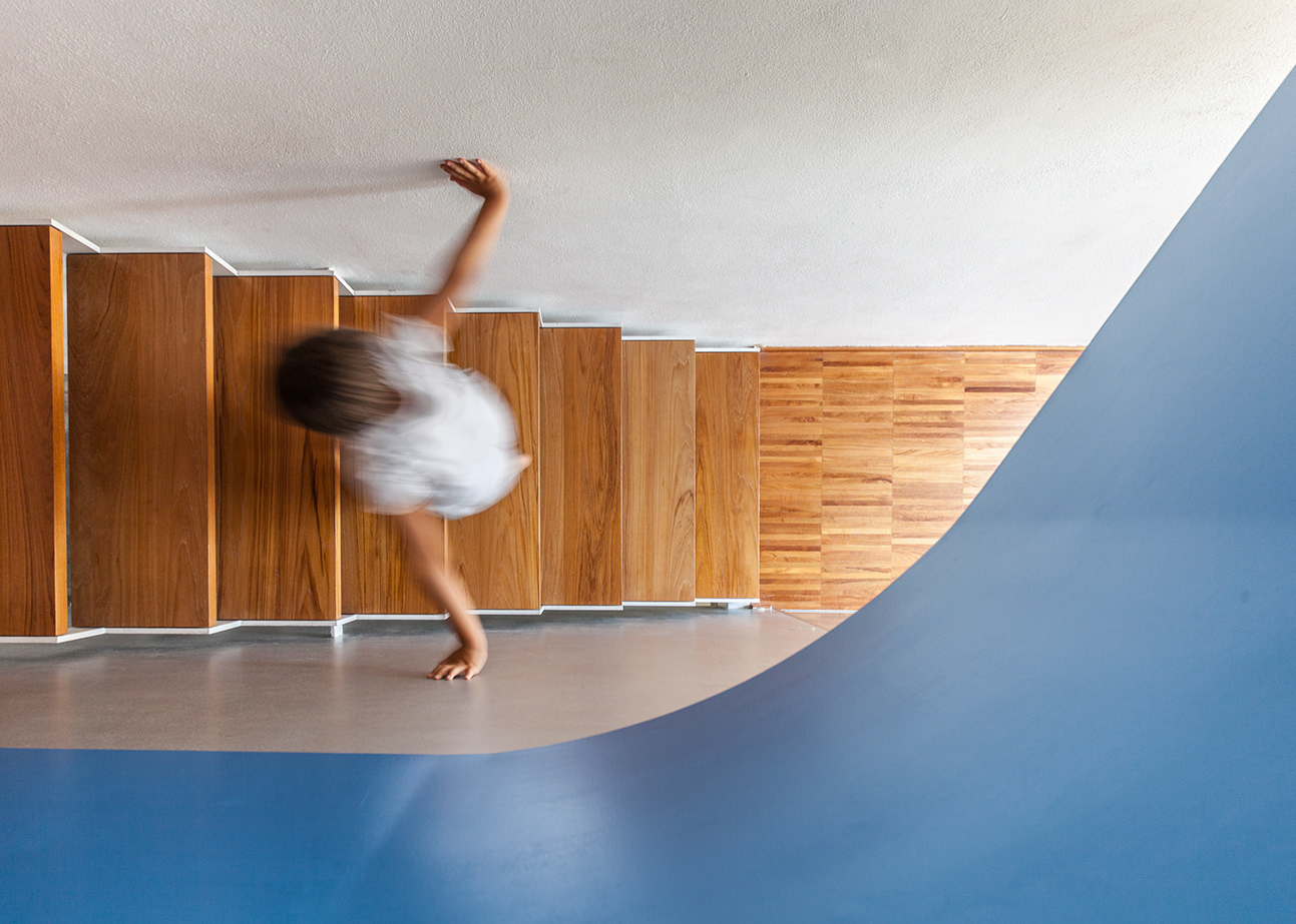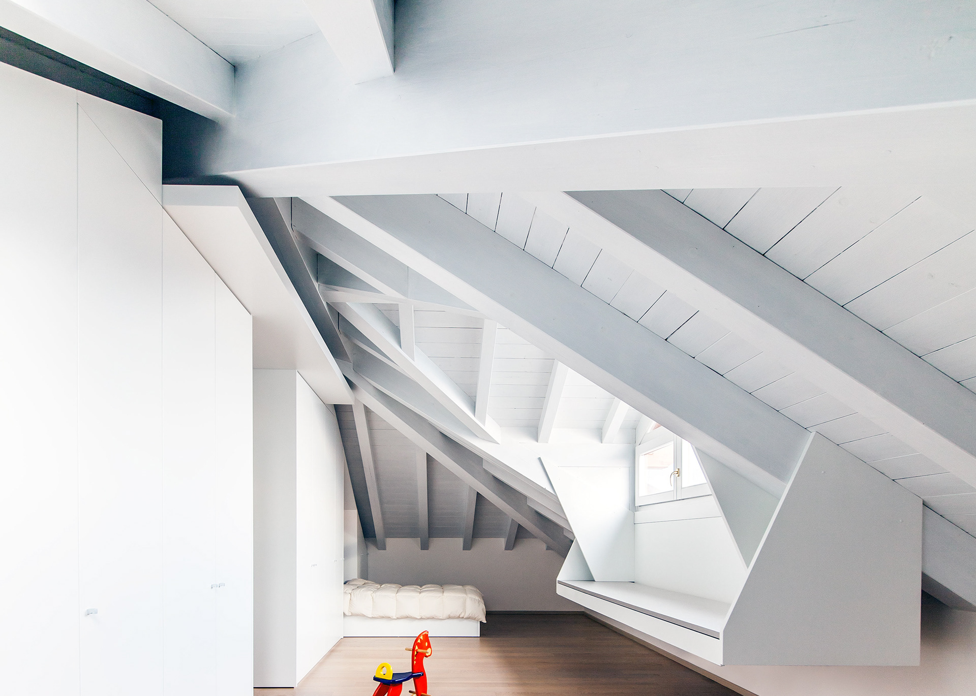 La casa unifamiliare costruita nel 2007 dai genitori è stata sopralzata creando un nuovo appartamento per la figlia. Il concetto alla base del progetto parte dalla volontà di creare spazi domestici in continuità tra loro che pur essendo aperti verso il paesaggio consentano una certa intimità e riservatezza. In questo senso la casa è un grande spazio suddiviso in stanze in continuità con piccoli patii. Nuove elemento che organizza la gerarchia della casa è rappresentato da un blocco centrale rivestito in doghe di noce che articola e suddivide le funzioni interne e che a sua volta contiene il vano ascensore e i servizi.