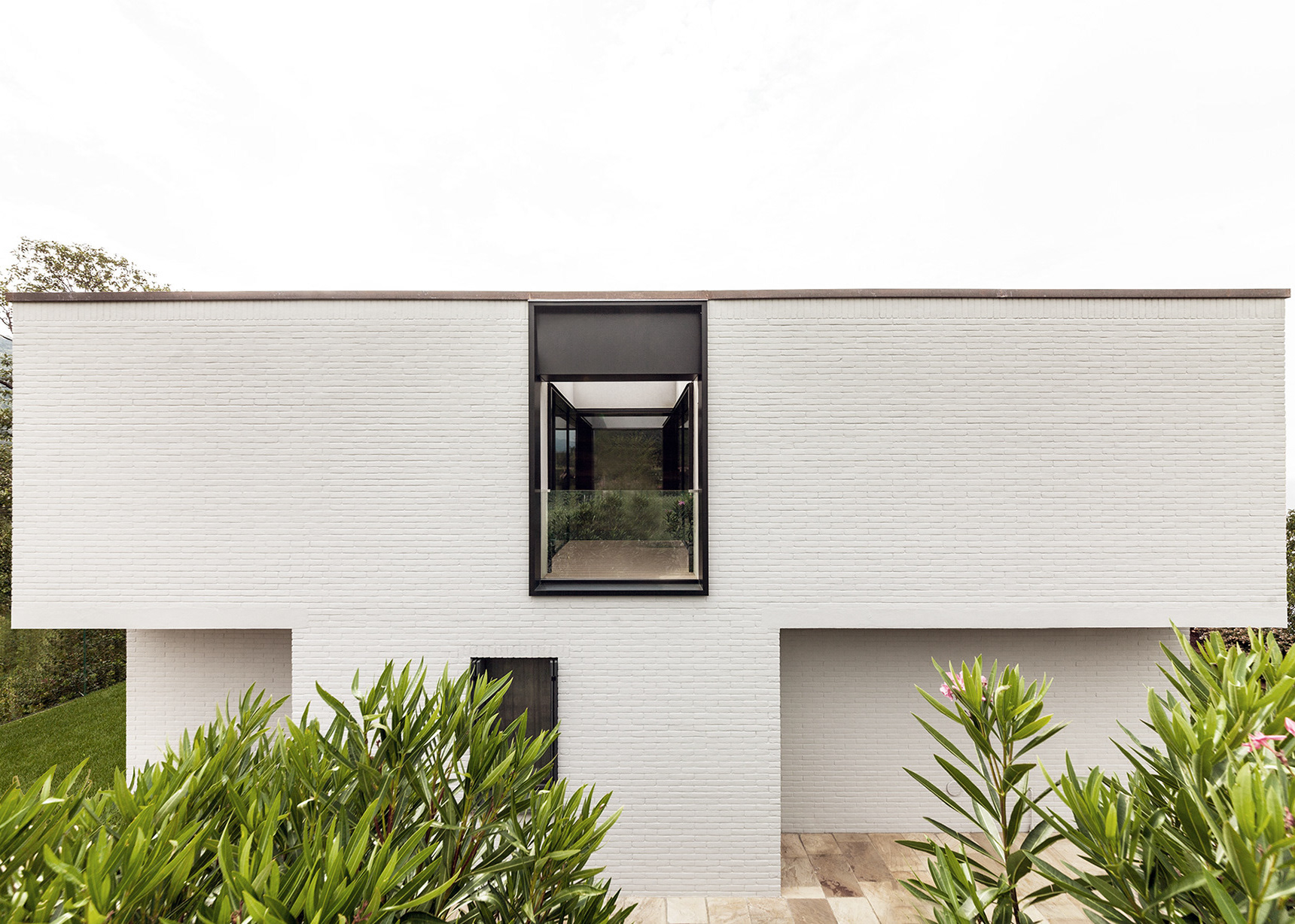 The parents home built in 2007 has been expanded to form a new apartment for the daughter. The concept behind the project starts from the desire to create living spaces that, although open to the landscape, allowing some privacy and confidentiality. In this sense, the house is a large space divided into rooms in continuity with small patios. New element that organizes the hierarchy of the house is represented by a central block lined with walnut slats that articulates and divides the internal functions and which contains the elevator shaft and services.