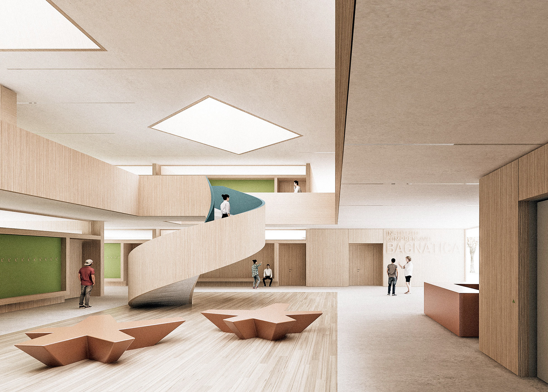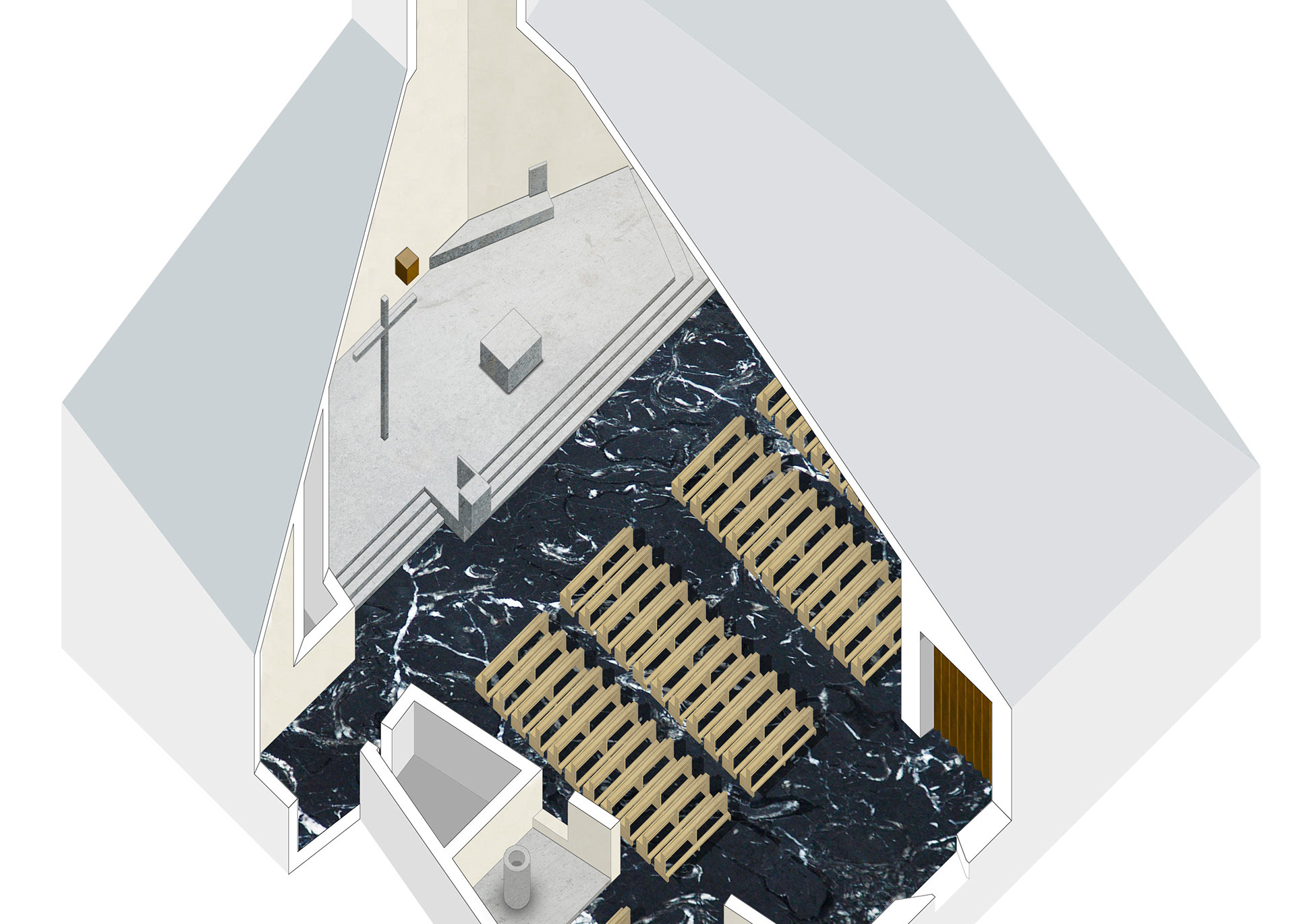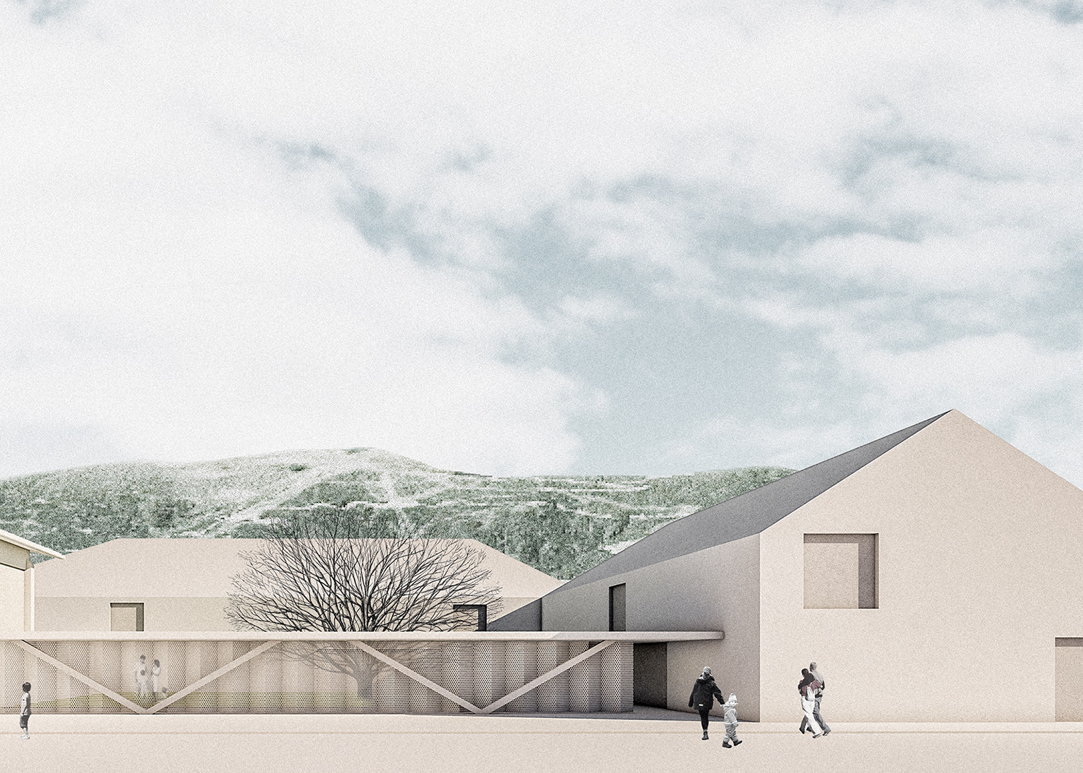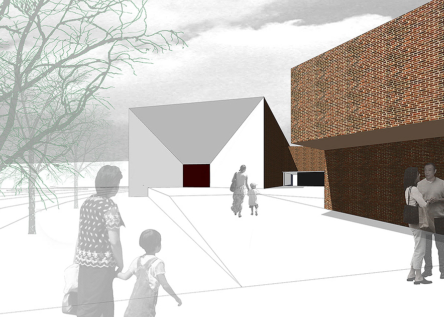 L’obiettivo del progetto è quello di realizzare un edificio ex novo come estensione di quello esistente, lavorando per addizione. L’edificio, dalla forma poligonale, si impianta lungo il perimetro orientale del lotto in quanto vuole conservare il vuoto urbano esistente per offrire delle relazioni all'esterno: con la strada verso Est, con il cortile e gli orti familiari a Ovest.