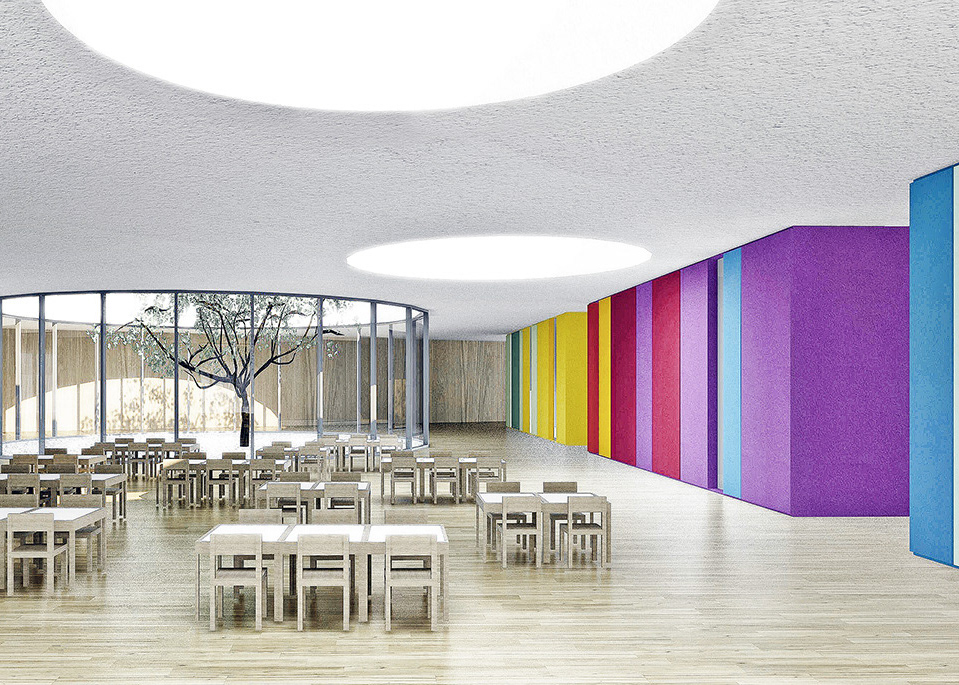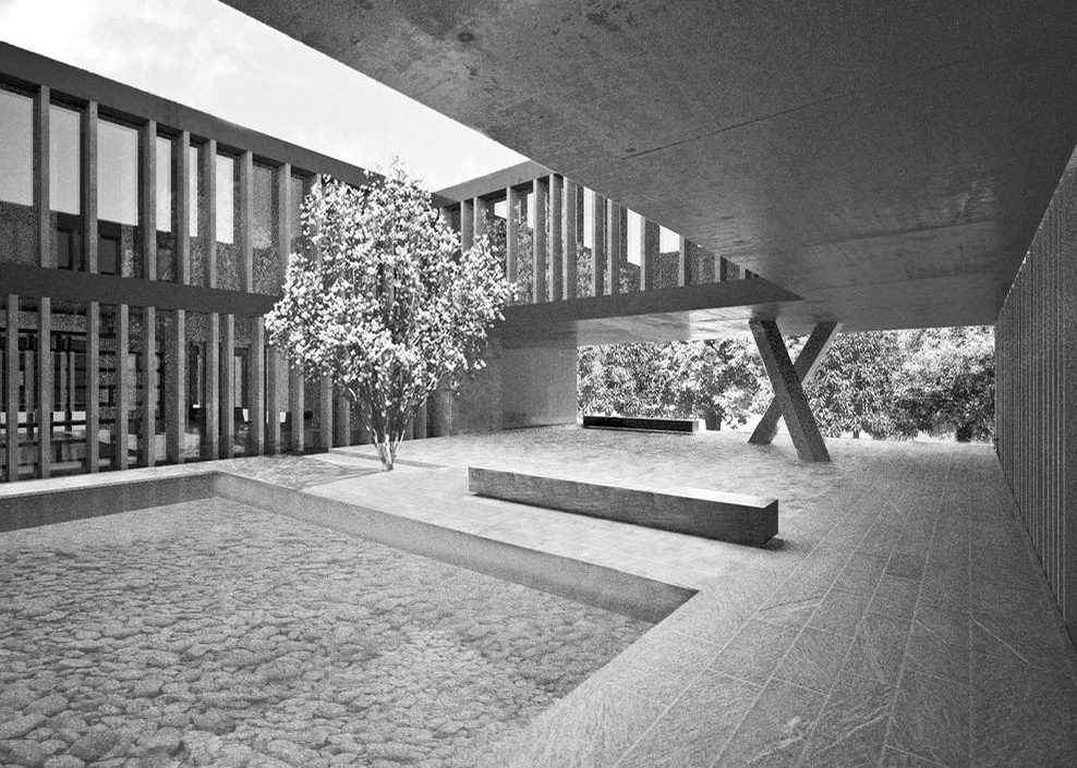 Questa scelta è data dalla esigenza di avere uno spazio all’aperto protetto che funga da filtro e permetta la relazione diretta tra l'estensione e quello esistente in continuità con gli spazi esterni.