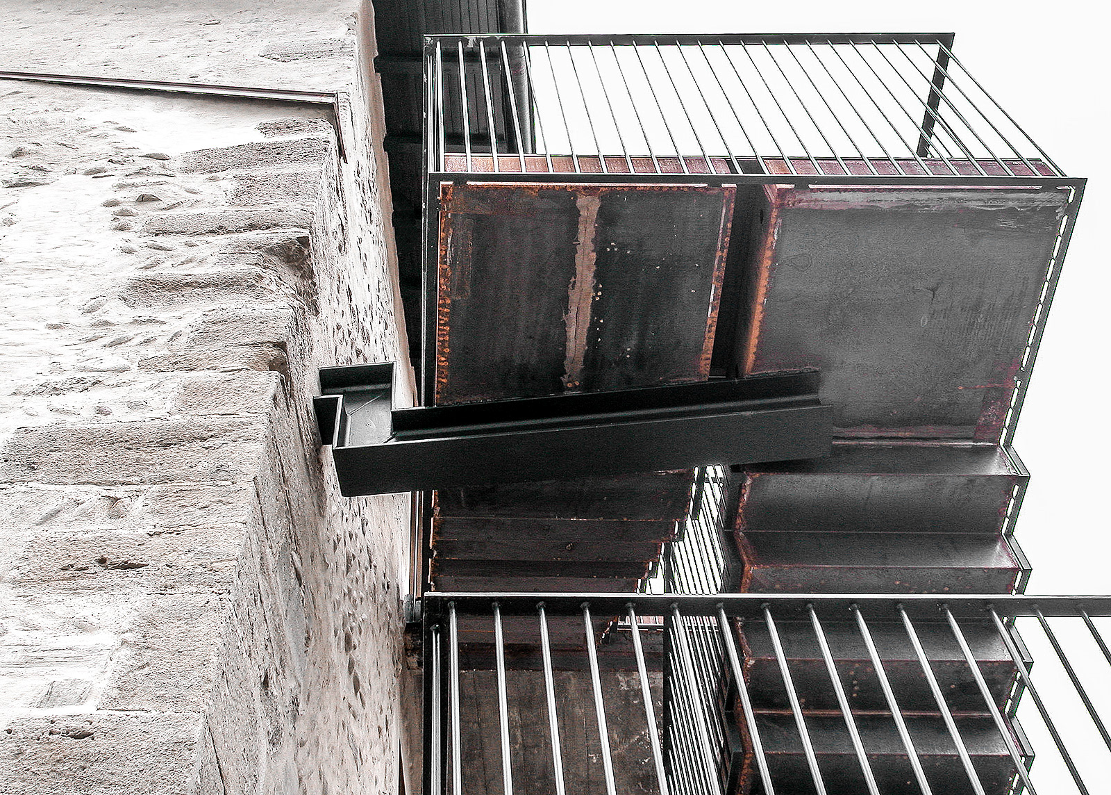 The building of the ex church of San Giuliano is what remains of a large and important settlement documented as early as 774 AD. The new scale, fully open and suspended, defines more clearly the spatial limits. The relationship between old and new is also solved by the use of materials such as steel for the support structure, simple iron rods painted for the parapets and wooden planks for the flooring of the steps and landings.