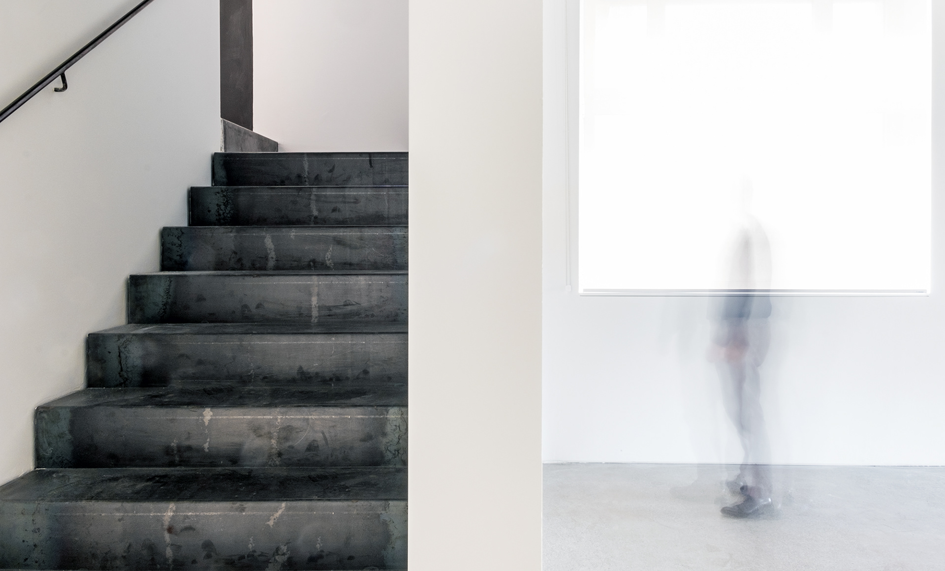 L’immagine interna è molto sobria. Lo spazio è neutro, atto ad accogliere esposizioni di differente natura, materialità e carattere. Esso si struttura in modo fluido accompagnato da un attento uso del colore: il bianco delle nuove contropareti in gesso, il nero del soffitto e degli impianti, il grigio del pavimento in cemento levigato e il giallo limone della parete d’ingresso.